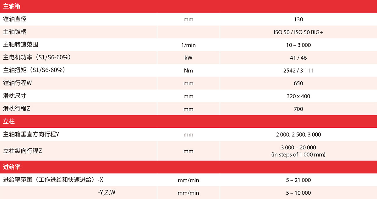 機(jī)床配置滑枕和工作鏜軸。主軸箱和WHR13機(jī)型相同。